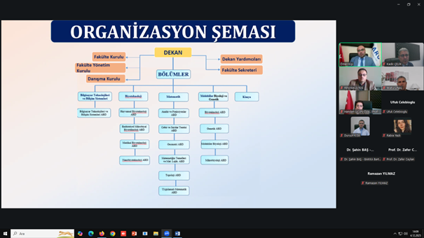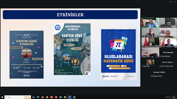 Bartın Üniversitesi Danışma Kurulları Yönergesi"’nin Çalışma Usul ve Esasları başlıklı 8'inci maddesinin birinci fıkrasının (e) bendi gereğince Fen Fakültesi Danışma Kurulu Toplantısı, Fen Fakültesi Dekanı Prof. Dr. Ömer KİŞİ başkanlığında danışma kurulu üyelerinin katılımıyla 04 Aralık 2025 Perşembe günü saat: 14.00’de çevrimiçi olarak gerçekleştirildi. Oldukça verimli geçen toplantıda paydaşlarımızın görüş ve önerileri kayıt altına alınarak, önümüzdeki süreçlerde bu öneriler doğrultusunda iyileştirmelerin yapılması kararlaştırıldı.