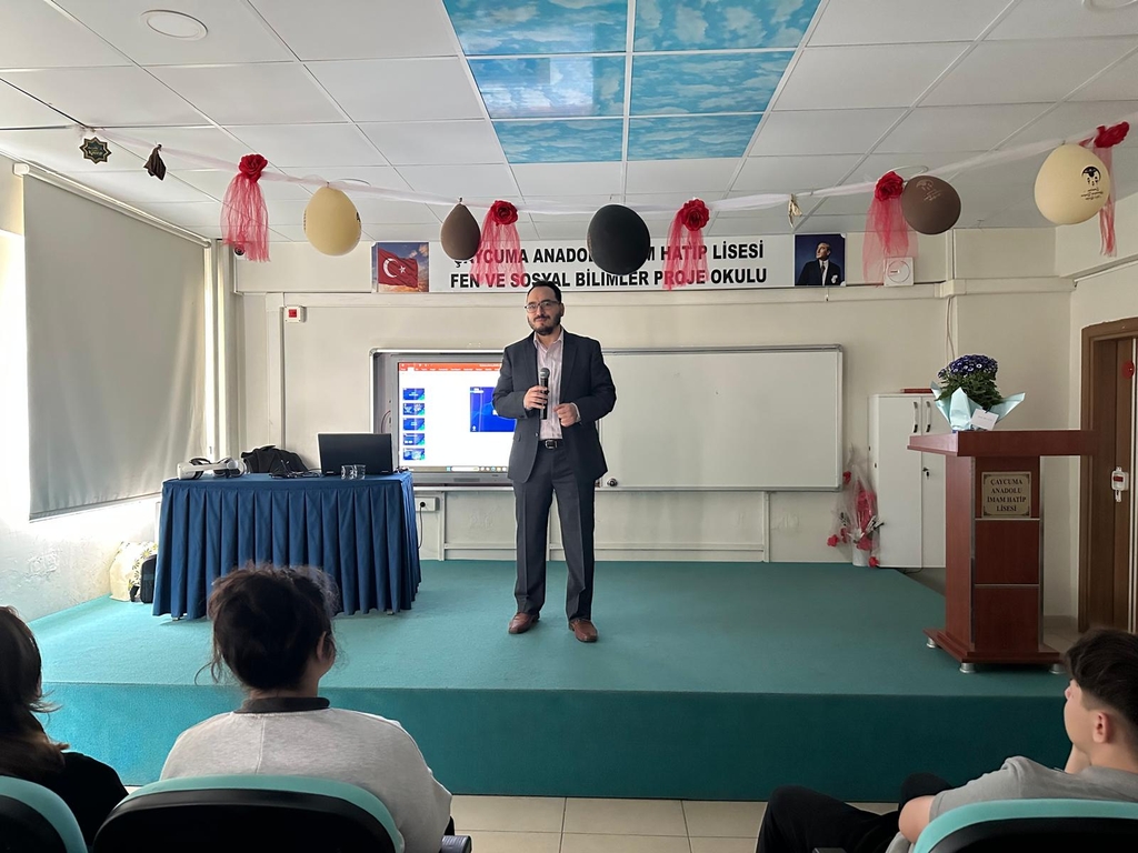 Fakültemiz Bilgisayar Teknolojisi ve Bilişim Sistemleri Bölümü öğretim üyelerinden Doç. Dr. Ahmet Berk Üstün, TÜBİTAK Bilim Söyleşileri projesi kapsamında bölgedeki ortaokul ve lise öğrencileriyle bir araya gelerek teknoloji dünyasındaki en güncel gelişmeleri paylaştı.